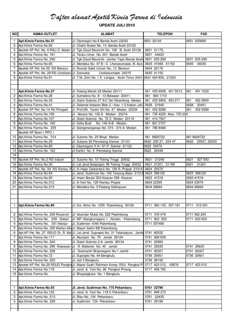 Apotek Kimia Farma Pci Banten Telepon 62 254 394827