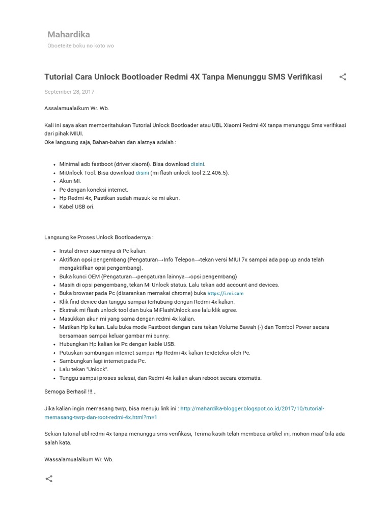 Tutorial Cara Unlock Bootloader Redmi 4x Tanpa Menunggu Sms Verifikasi Pdf